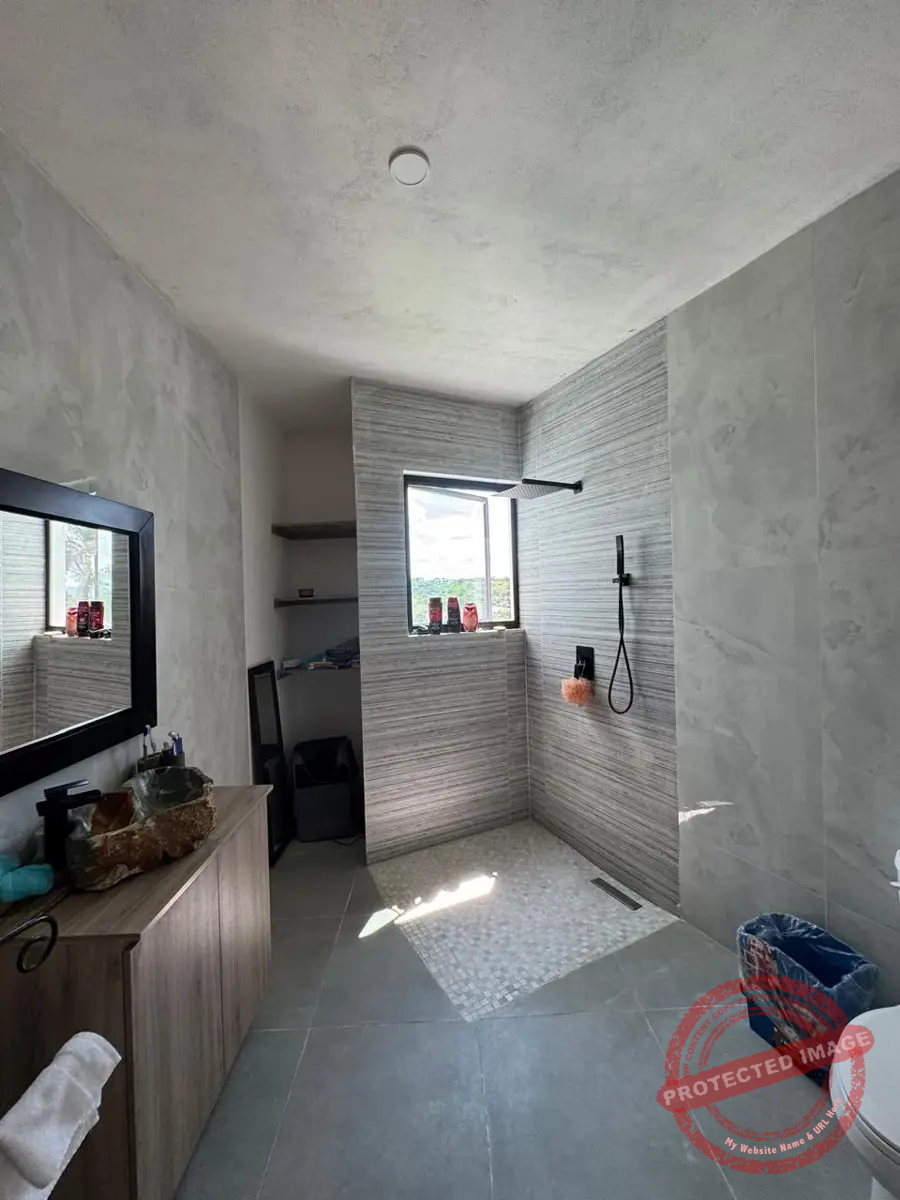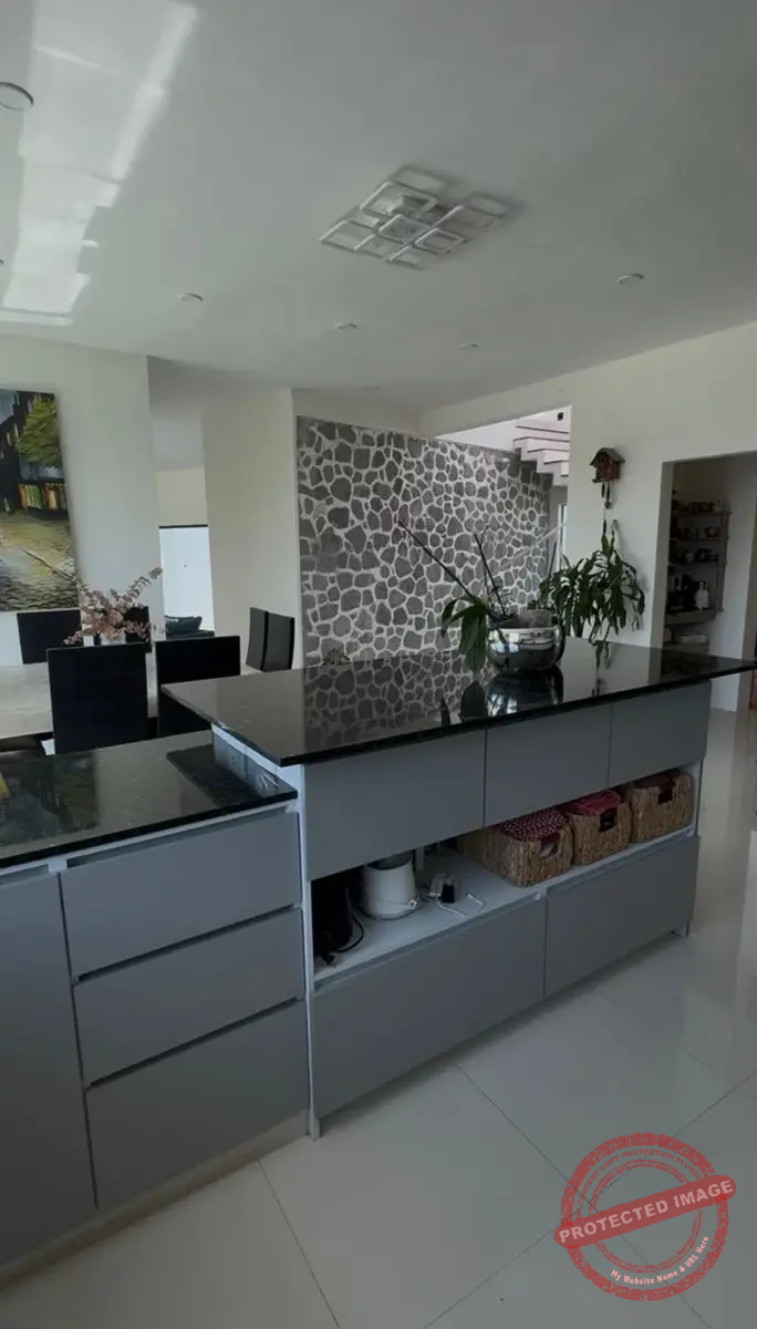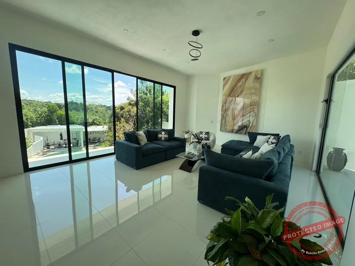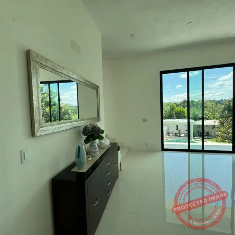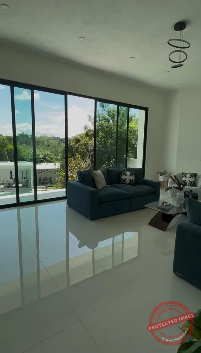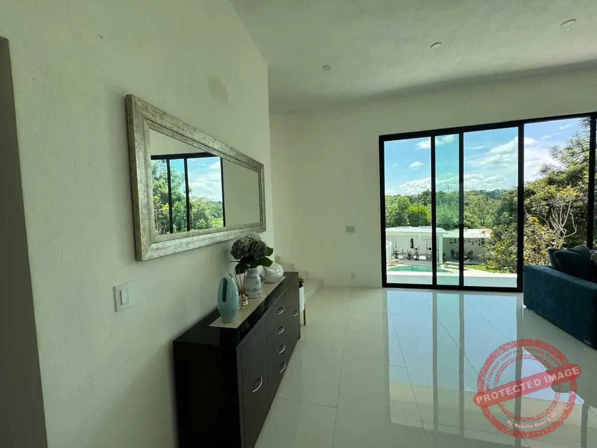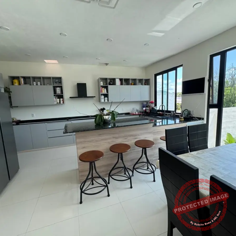Al entrar, un ventanal impresionante te da la bienvenida con una vista al jardín y la alberca. La sala, amplia y de techos altos, se llena de luz y frescura. A su lado, el comedor comparte el mismo ambiente abierto con la cocina, moderna y funcional, con estufa eléctrica de 5 áreas con campana extractora, Horno, enfriador para vinos y horno de microondas, equipada con encimeras de granito, moderna tarja, y alacena abierta con barra de café completa este espacio ideal para convivir.