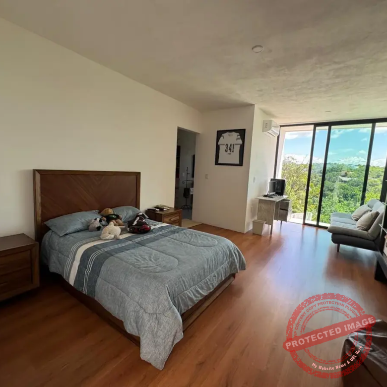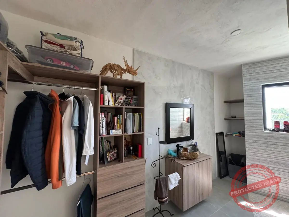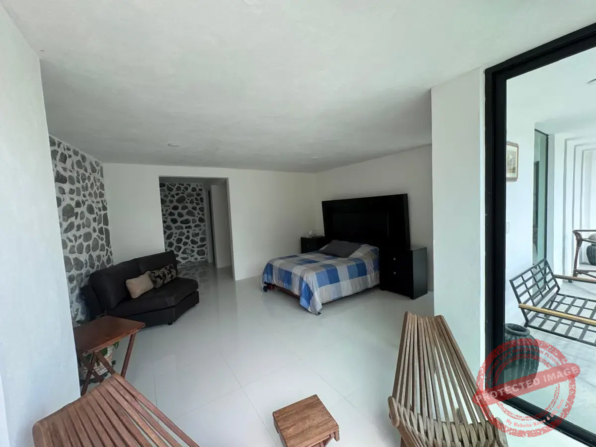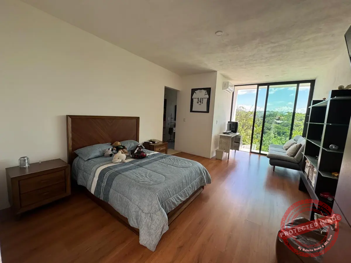 En la planta alta, tres recámaras con baño y clóset te ofrecen privacidad y comodidad. La recámara principal destaca por su vestidor tipo walk-in closet y un baño espectacular con doble regadera y lavabos de ónix artesanal. Todas las recámaras cuentan con balcón con vista al jardín y la alberca.