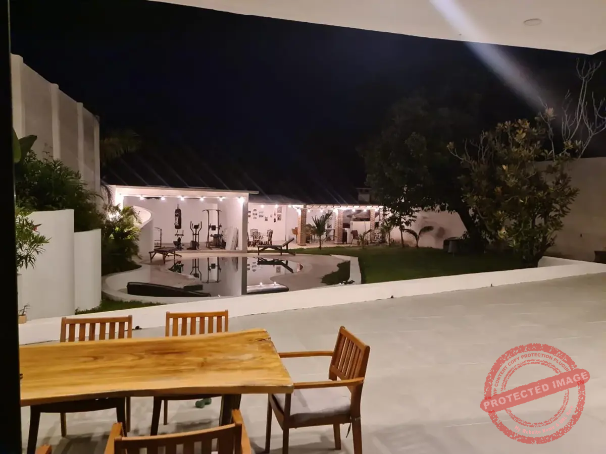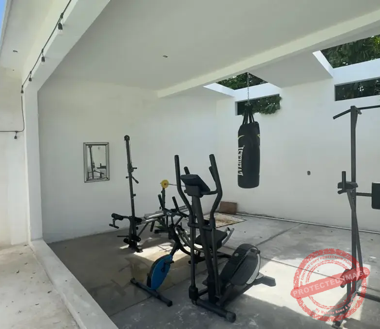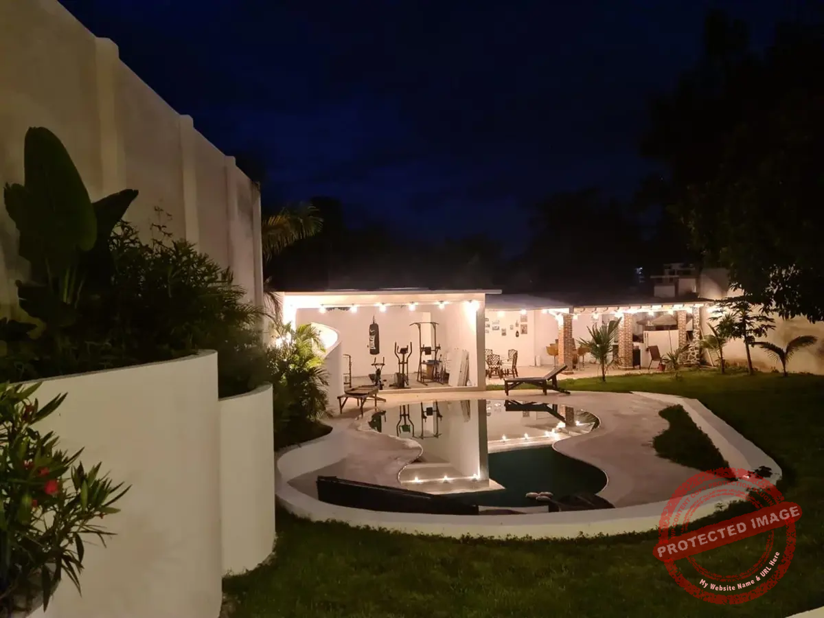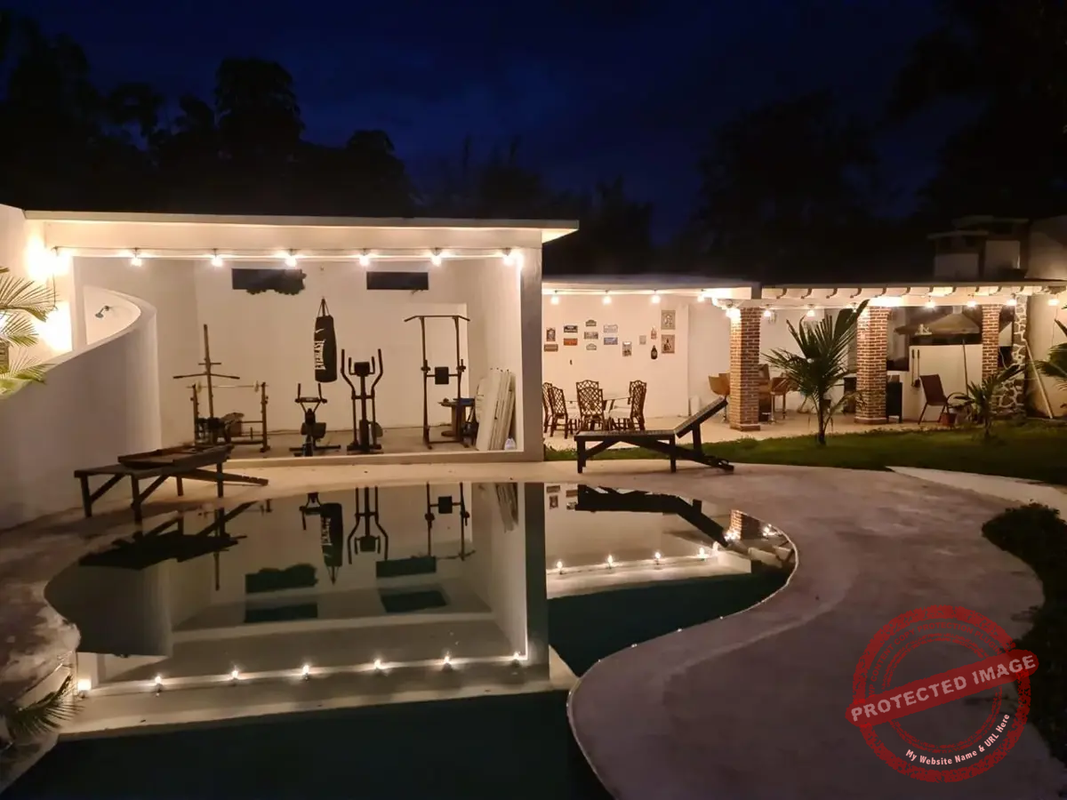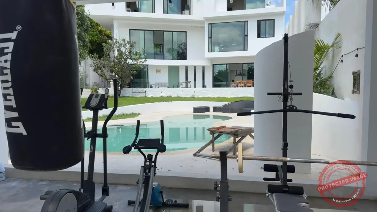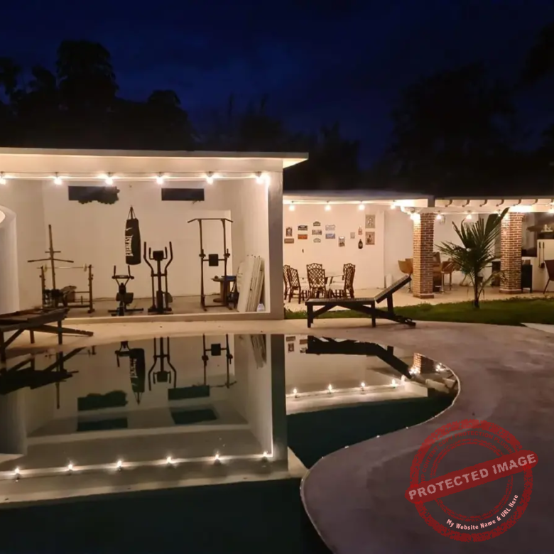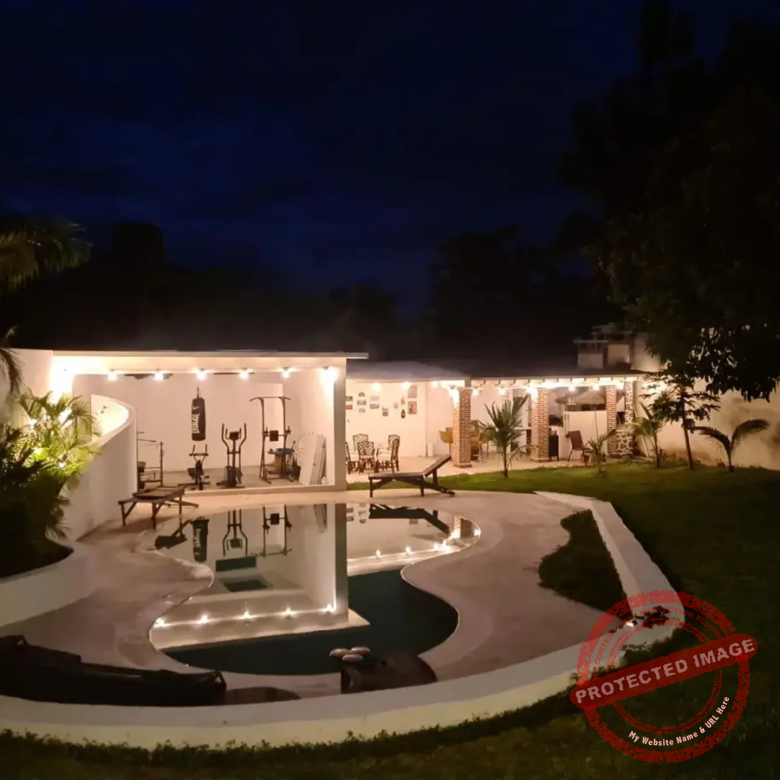 La alberca de Chukum, rodeada de un gran jardín, invita a disfrutar el clima y los fines de semana con amigos. La terraza principal cuenta con asador, horno para pizzas y espacio para reuniones familiares. Además, hay área de gimnasio con regadera.