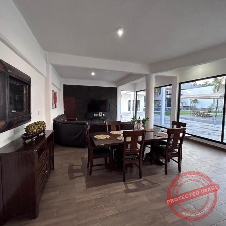 Esta casa de un nivel, ofrece un espacio vacacional y comodo para familia, con cimientos excelentes para construir segundo piso, y extencion de terreno para adaptarse a lo que necesites. Contando con 2 construcciones para negocio, y respectiva vigilancia 24/7. Cuenta con: