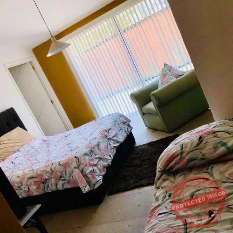 Recámara 2 con dos closets, baño completo y cancel con vista a jardín privado.